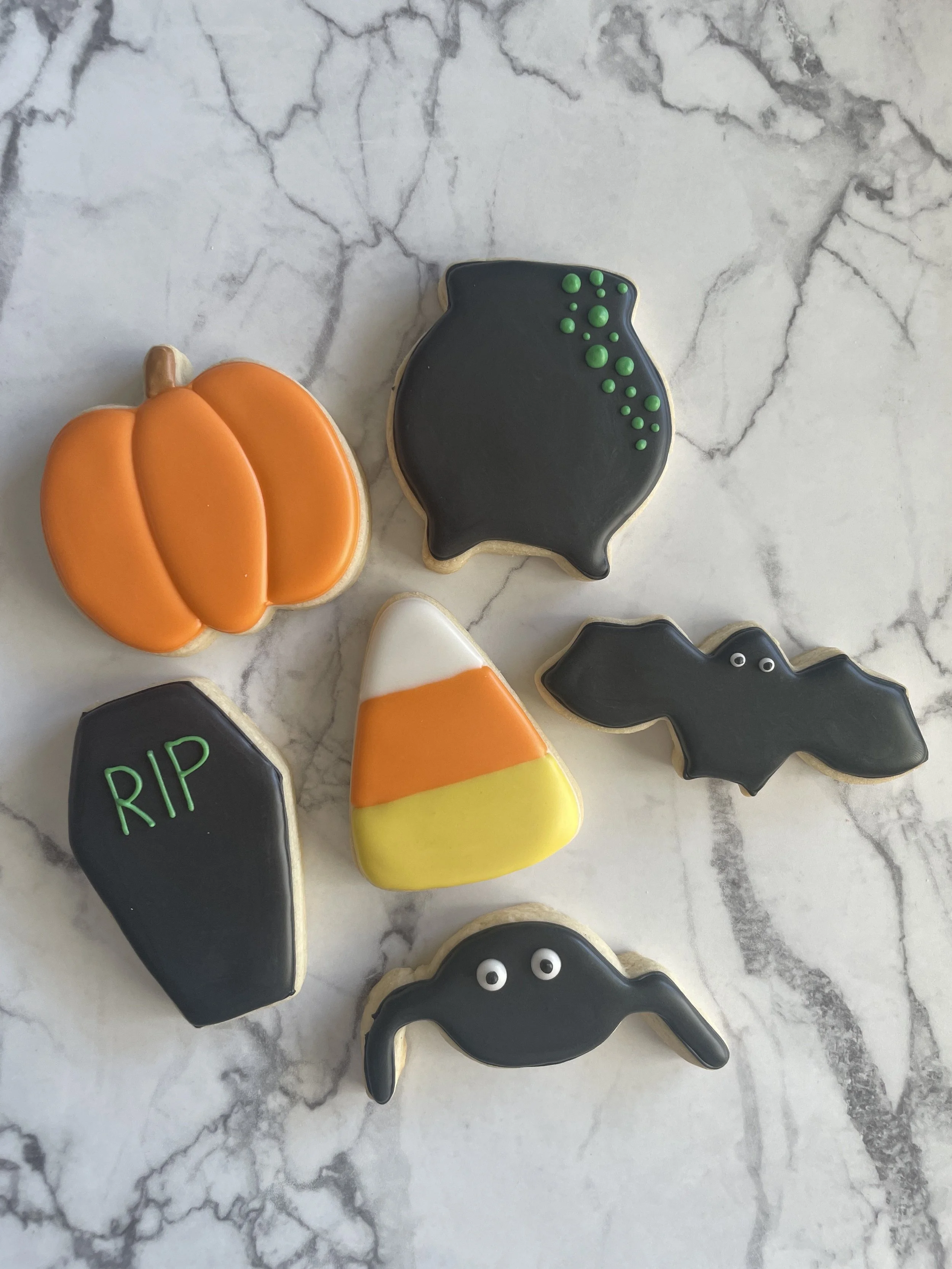 Get step-by-step video instruction for creating a full Halloween cookie set — from pumpkins and cauldrons to fun, festive designs. I’ll show you exactly how to outline, flood, and add details so your cookies look polished and ready for any Halloween celebration.